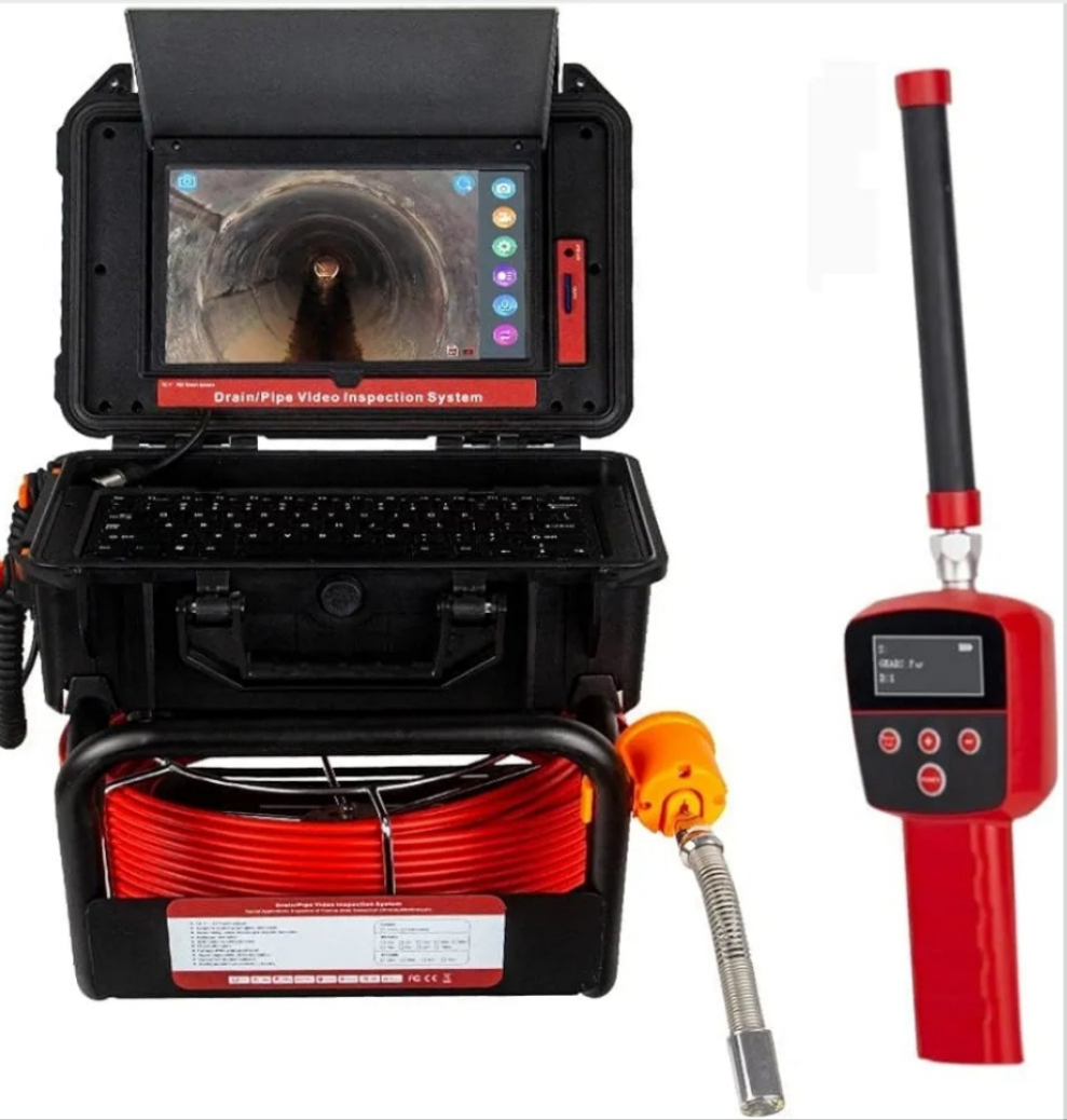 Sewer Inspection Camera with Locator,10.1 '' 16GB Touch Screen,Self Leveling Drain Pipe Endoscope Camera with 12 Lights,512hz Transmitter,7mm Fiberglass Cable,Auto Distance Counter,Keyboard(30M)
